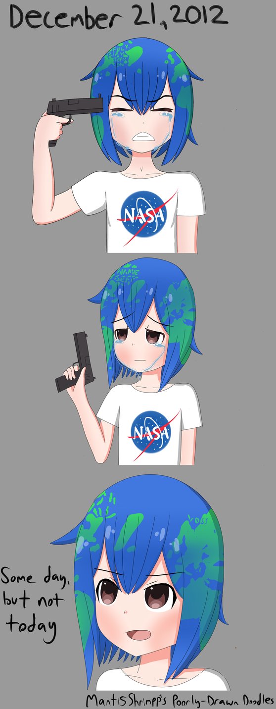 Eh. Šitādām bildēm pazūd viss joks par Earth-chan “I am not flat!” un citi jociņi par meiteni ar planētas īpašībām, un paliek tikai iemesls, lai kosplejeres varētu taisīt jaunus softcore porn gabalus…