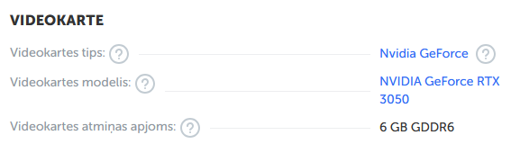 Laptopa 3050 ir tikai 4GB. 3060 ir 6Gb