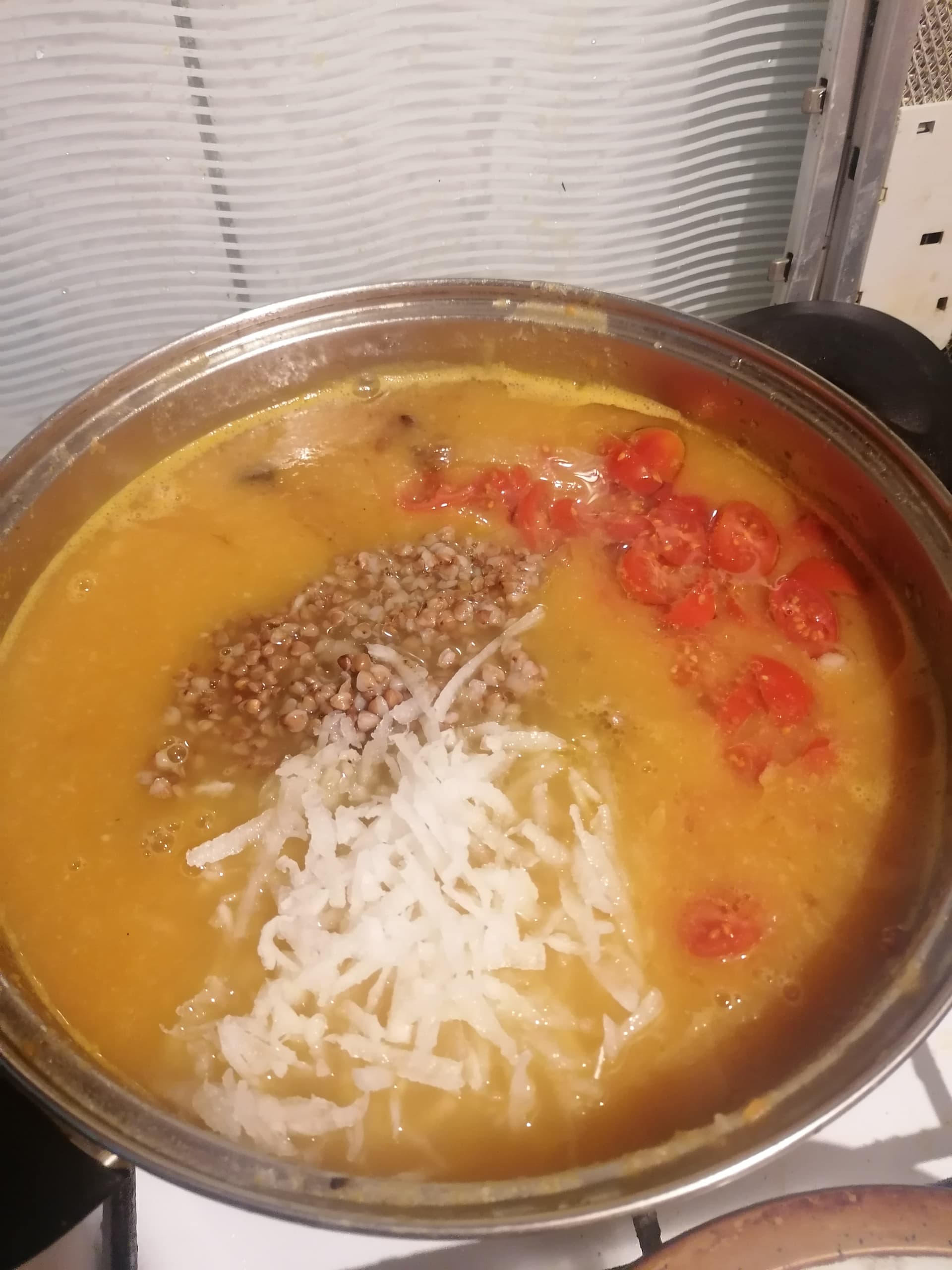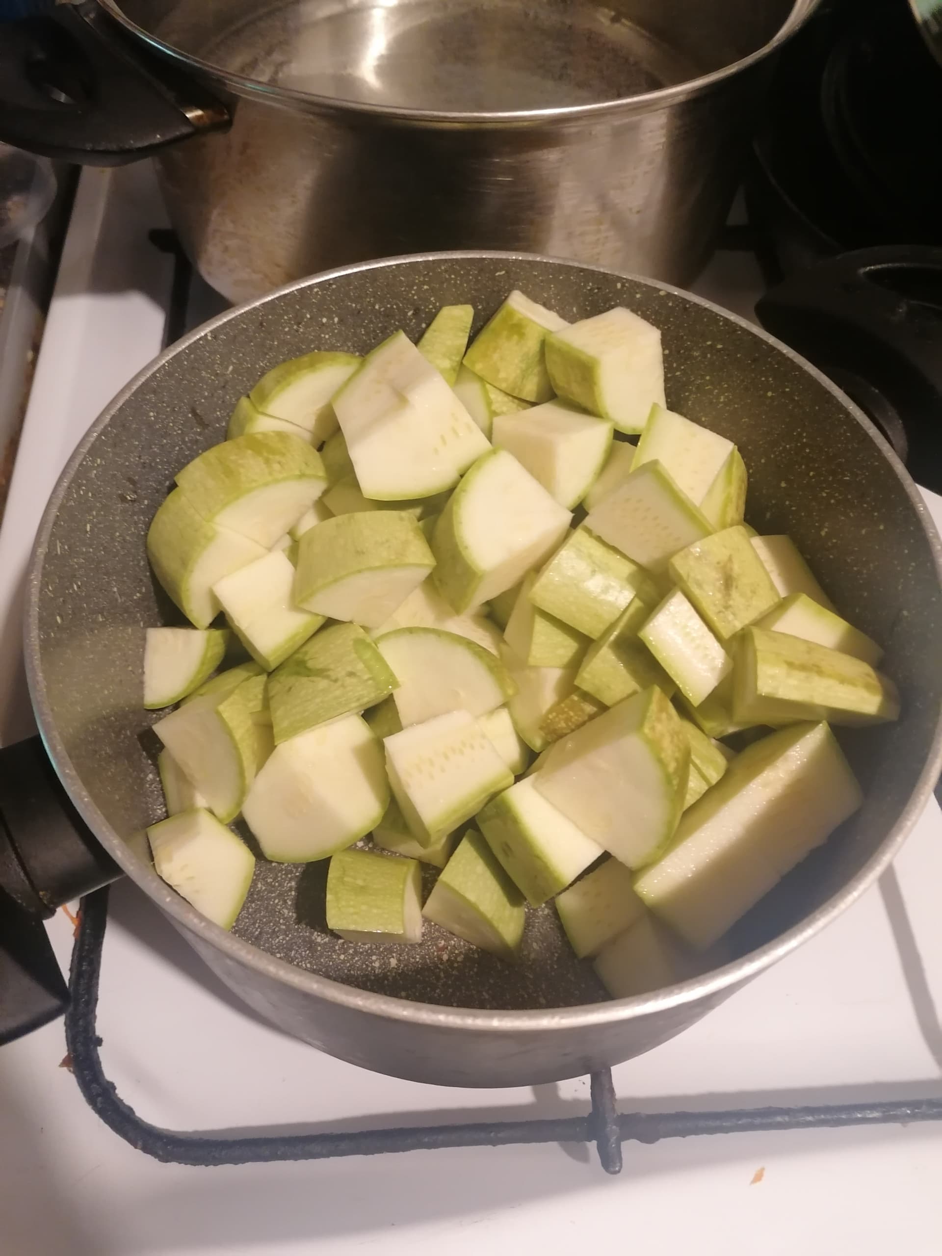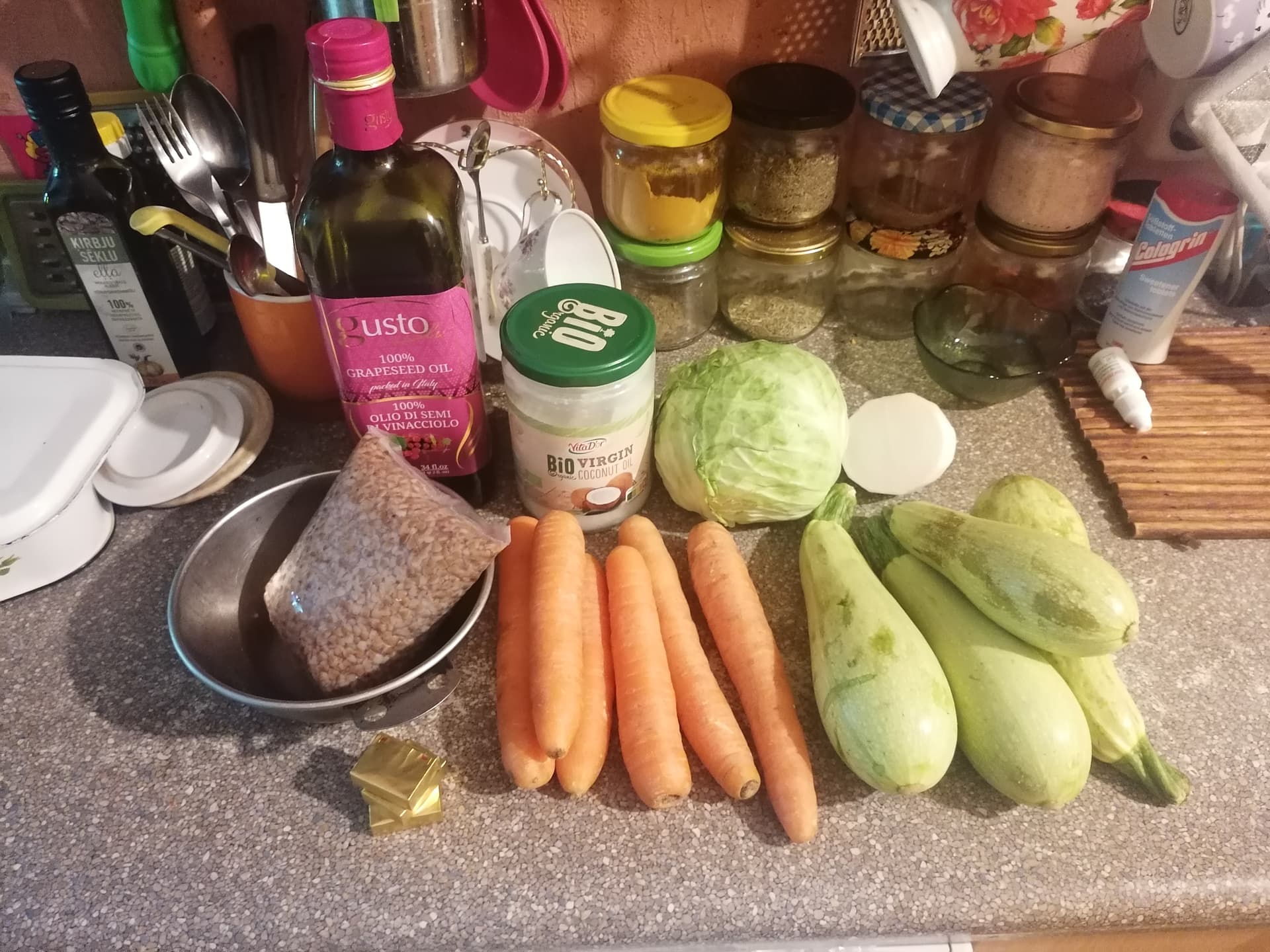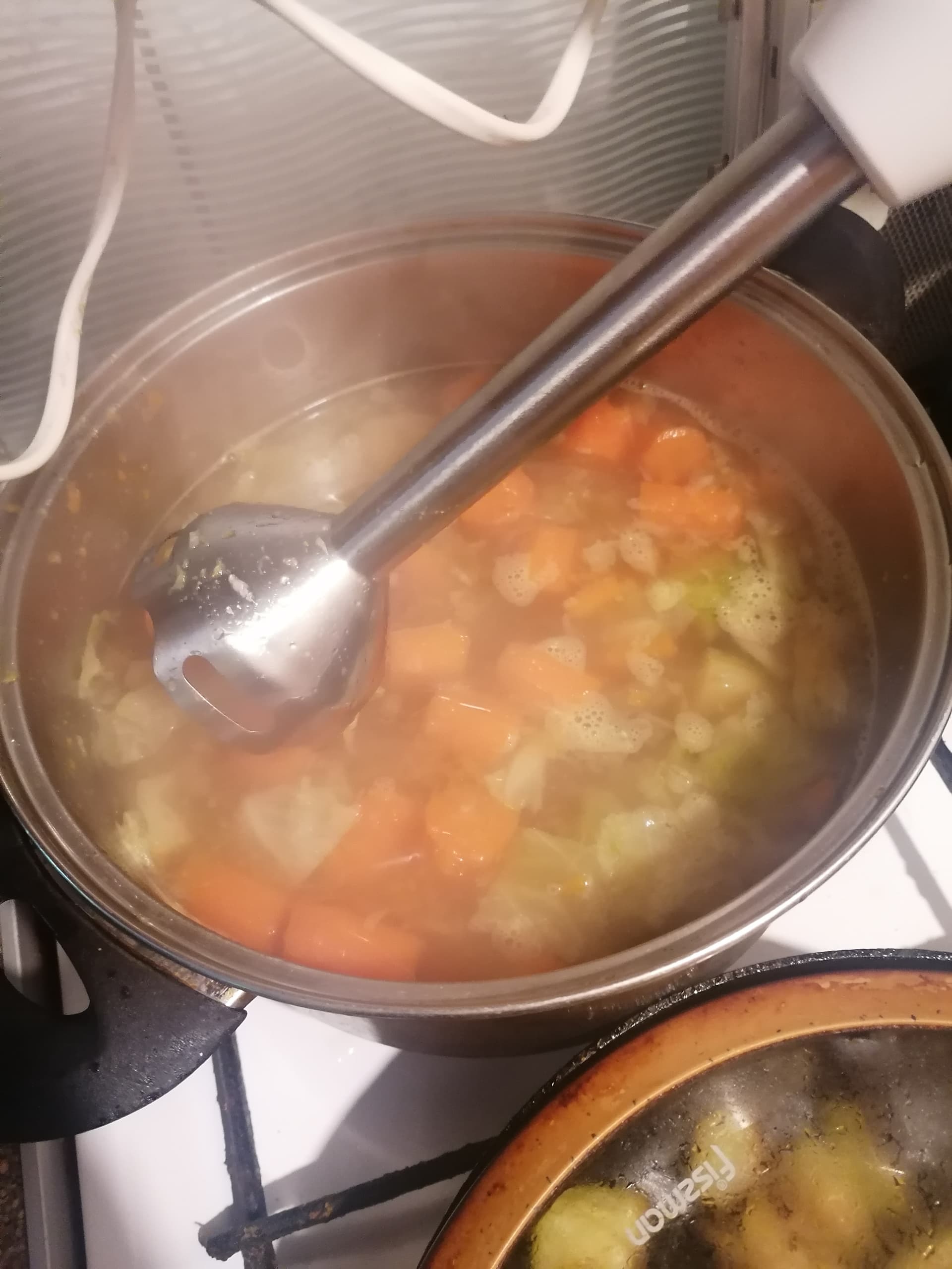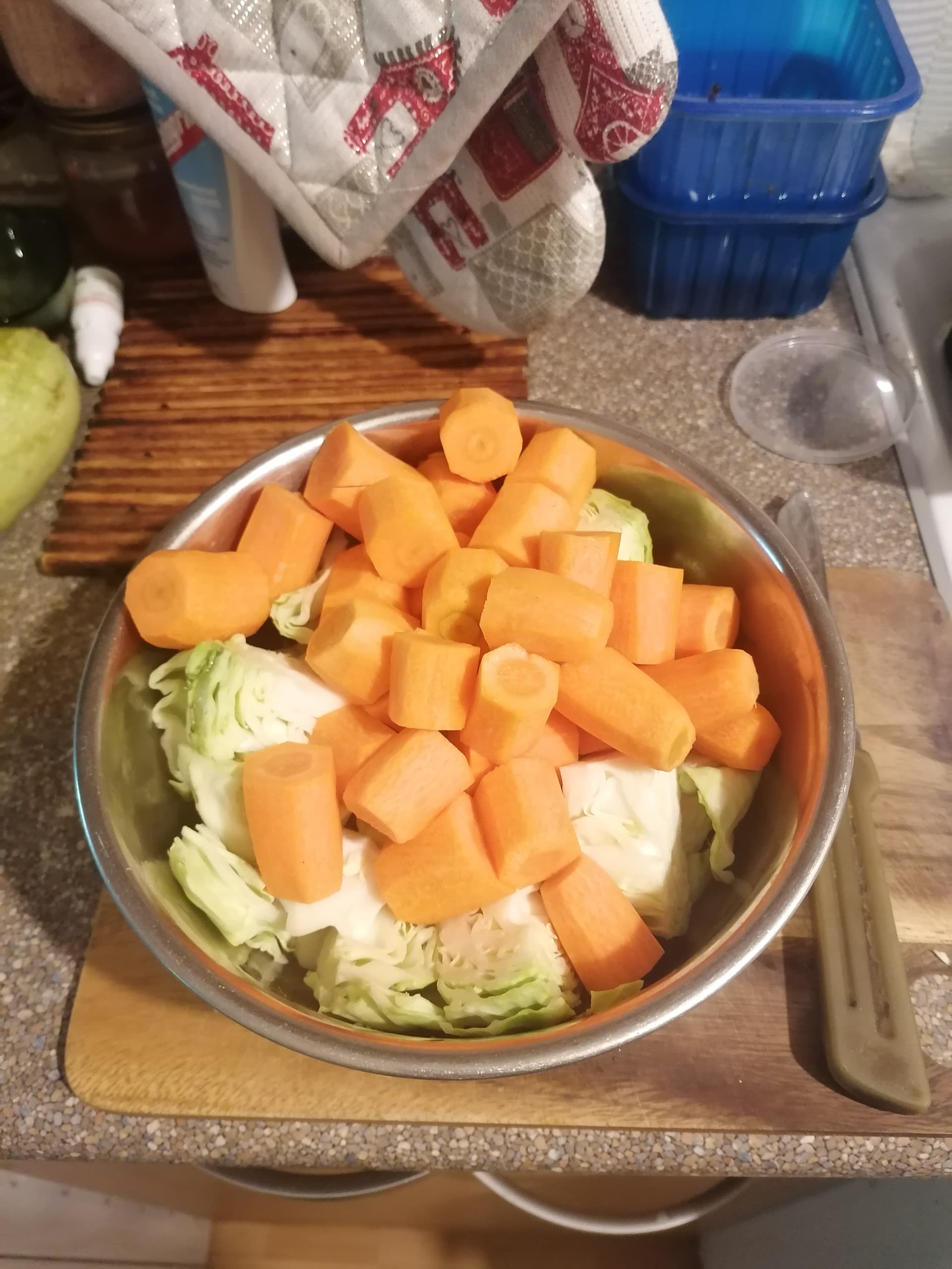 Viss pārējais ko vnk metam iekšā, mammai patīk kad ir chunks or pieces in soup, bet kabačus var sagriezt smalkāk pēc cepšanas jo cepot lielākus gabalus, nezūd tik daudz nutrients: