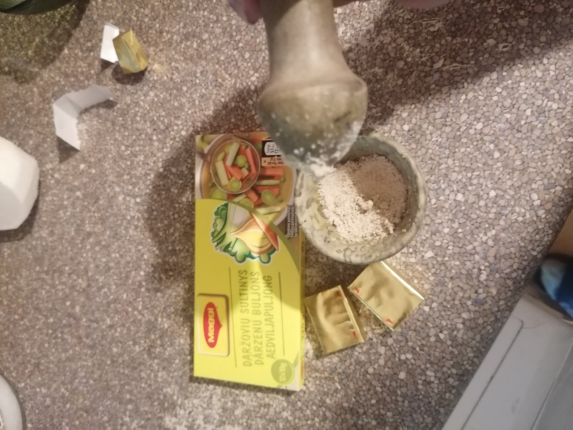 Es nez kā buljona kubi works so es samalu viņus piestā