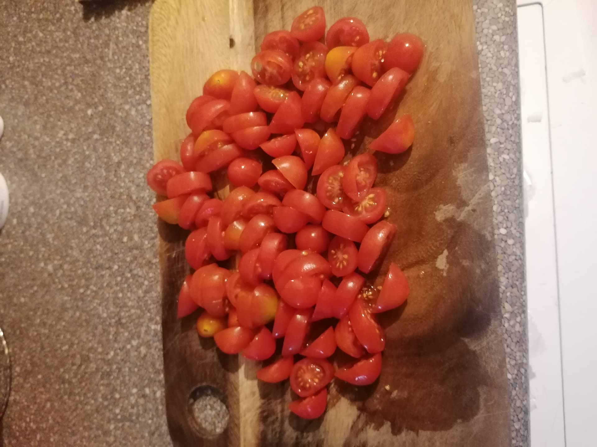 - tomato slices, biku sāls on them