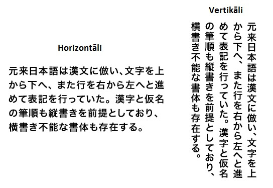 Japāņiem ir 2 rakstības veidi – horizontāli un vertikāli.