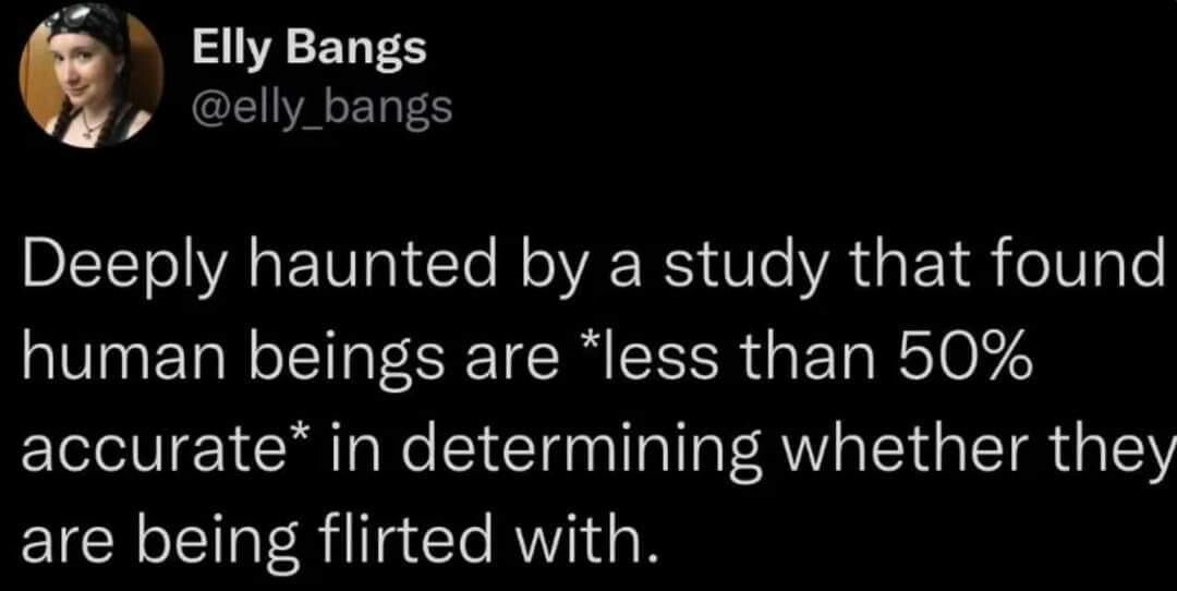 Vai tu gribi teikt, ka ja cilvēks negrib, lai ar viņu flirtē, tad viņš nespēj noteikt, vai ar viņu flirtē? Cuz that would be weird.