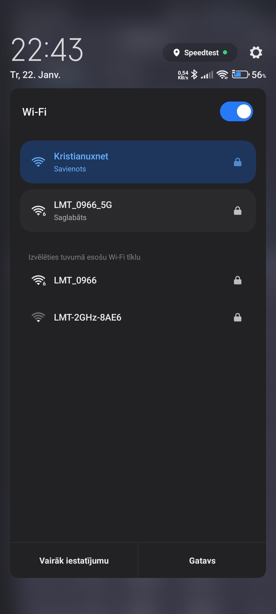 130Mbps nav tik daudz pielīdzinot 230-300Mbps, bet manās acīs tas ir ievērojami labāks scenārijs dēļ 20+8/mēn izmaksas salīdiznājumā ar LMT 19/mēn.