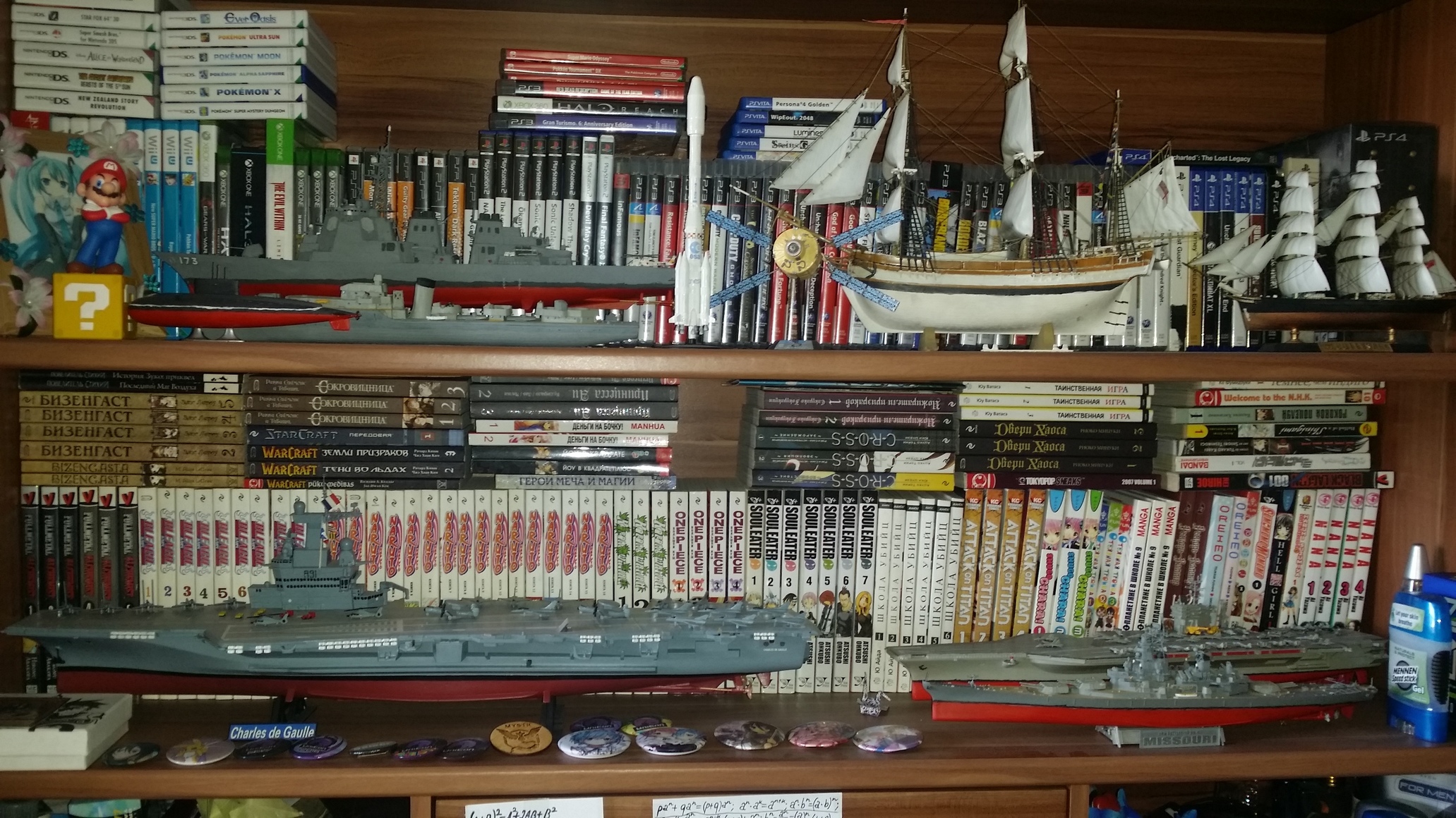 Mana mangu kolekcija (un daļa no mēroga modeļiem, badges un konsoļu spēļu kolekcija). Vēl ir Noragami un Boku no Hero Academia mangas citā istabā.