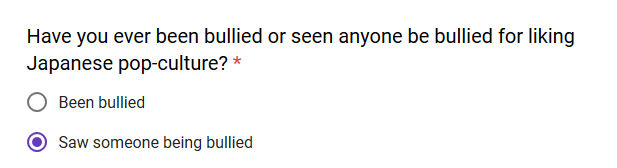 Esmu priekš sava pētnieciskā darba izvēlējusies tēmu par Japānas popkultūru, un būtu ļoti pateicīga, ja jūs varētu aizpildīt nelielu anketiņu! (Protams anonīmu) Viņa ir angliski, jo radīta arī šērošanai citās lapās, bet cerams tas nesagādās grūtības. Paldies jau iepriekš!
