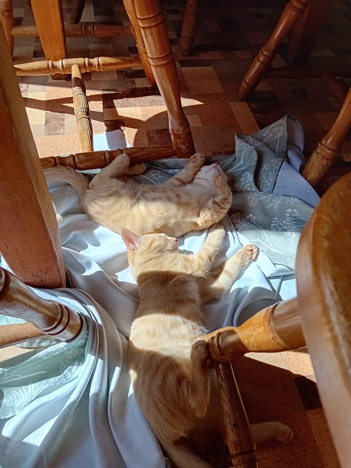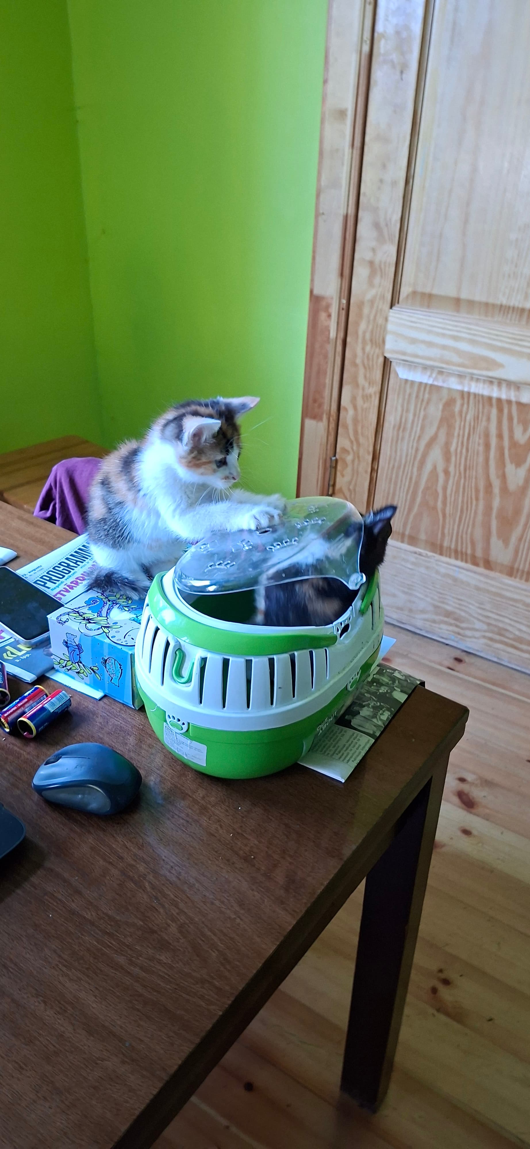 Nu vēl jau ir sīkas. Bet nu kaķēni jau strauji aug.