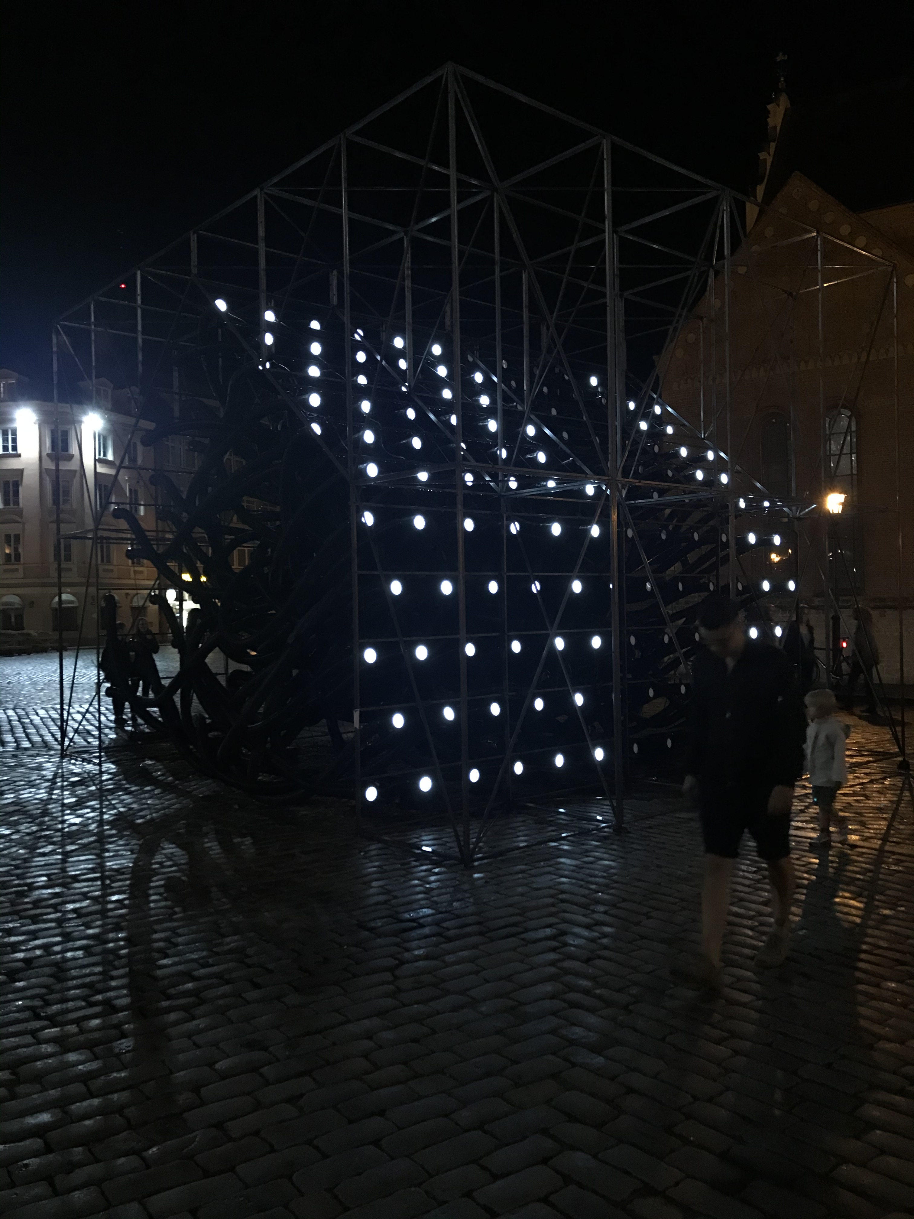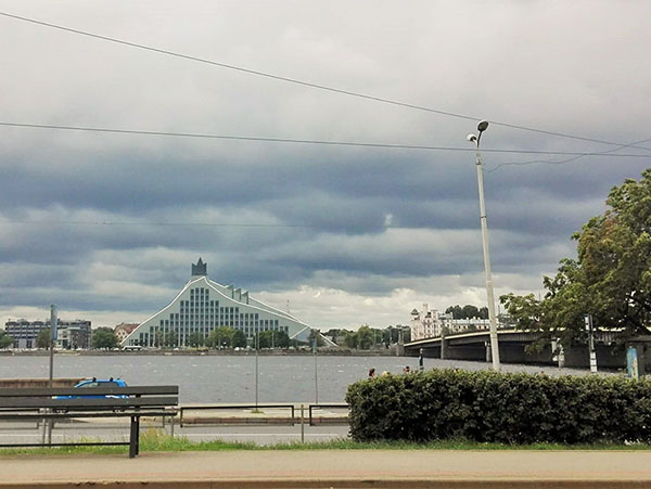 Teikšu tā, no krastamals tālās puses ēka pat tīri simpātiski izskatās savā siluatā un formā. Taču tajā pat laikā viņa tomēr neierakstās kopējā ainavā - izrauta tā teikt no citas vietas un laika (cik zinu, tad dizains ir tapis vēl tālajos 90-tajos, ar ko skaidrojas tad visas tās formas).