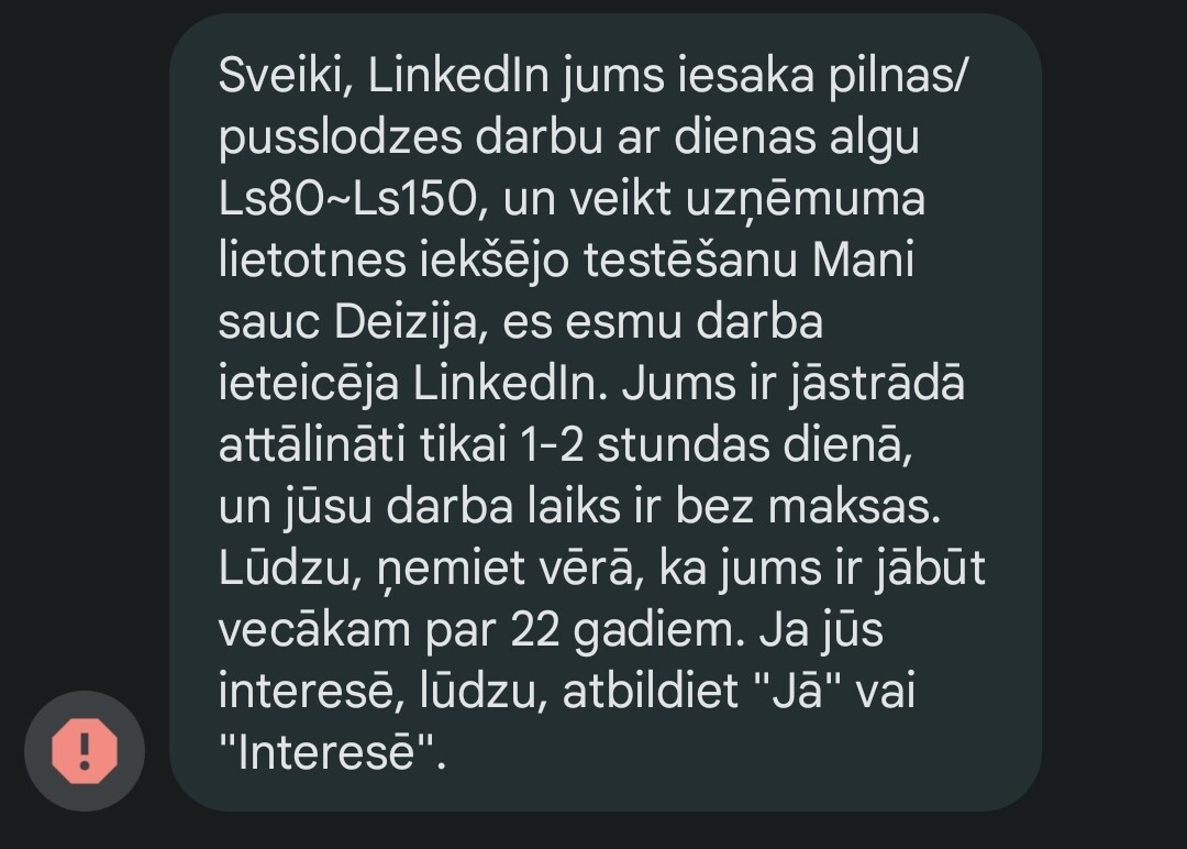 skatos, zvana nepazīstams, numurs, bet ar latvijas kodu, mazums ar darbu saistībā,