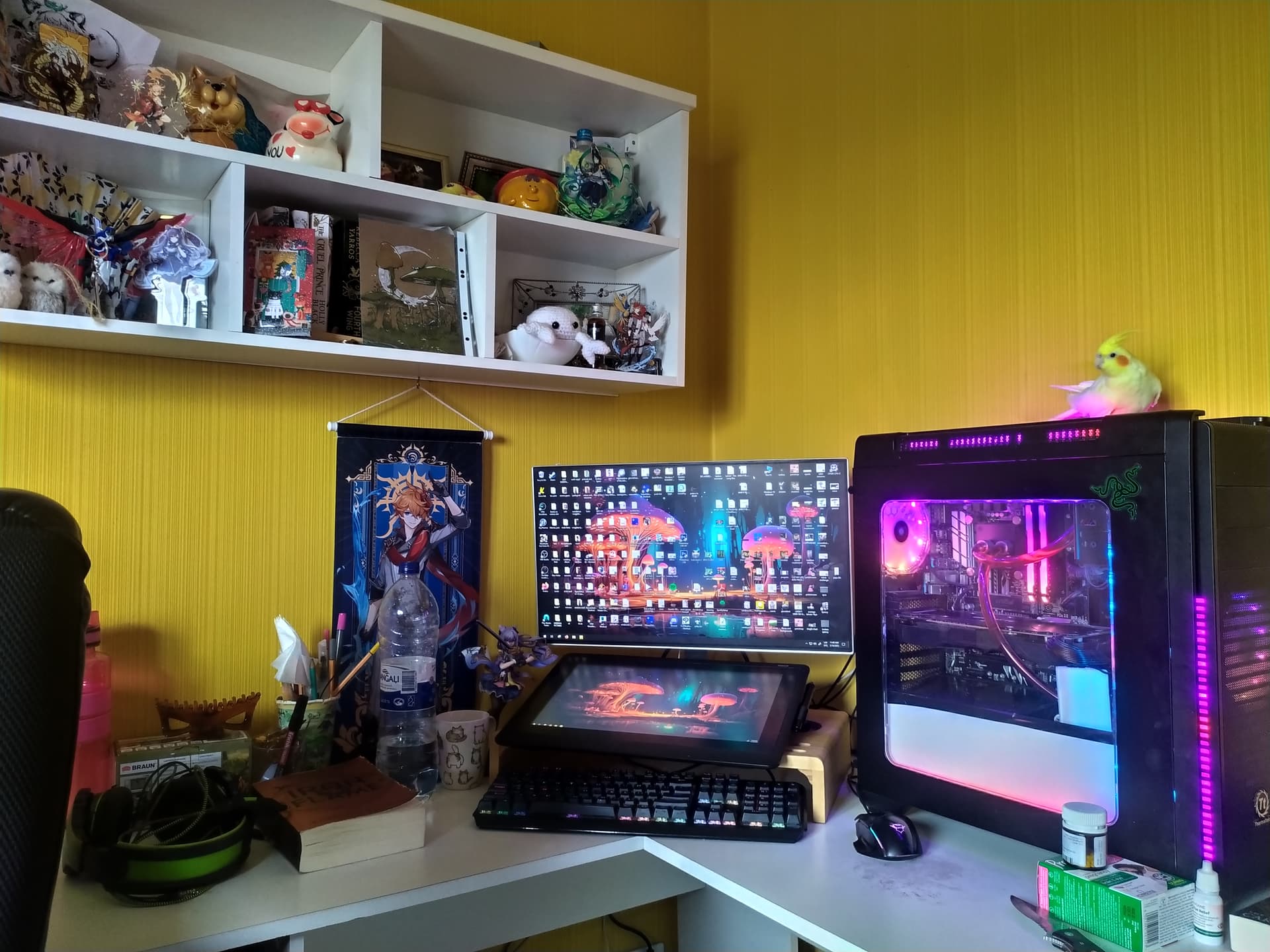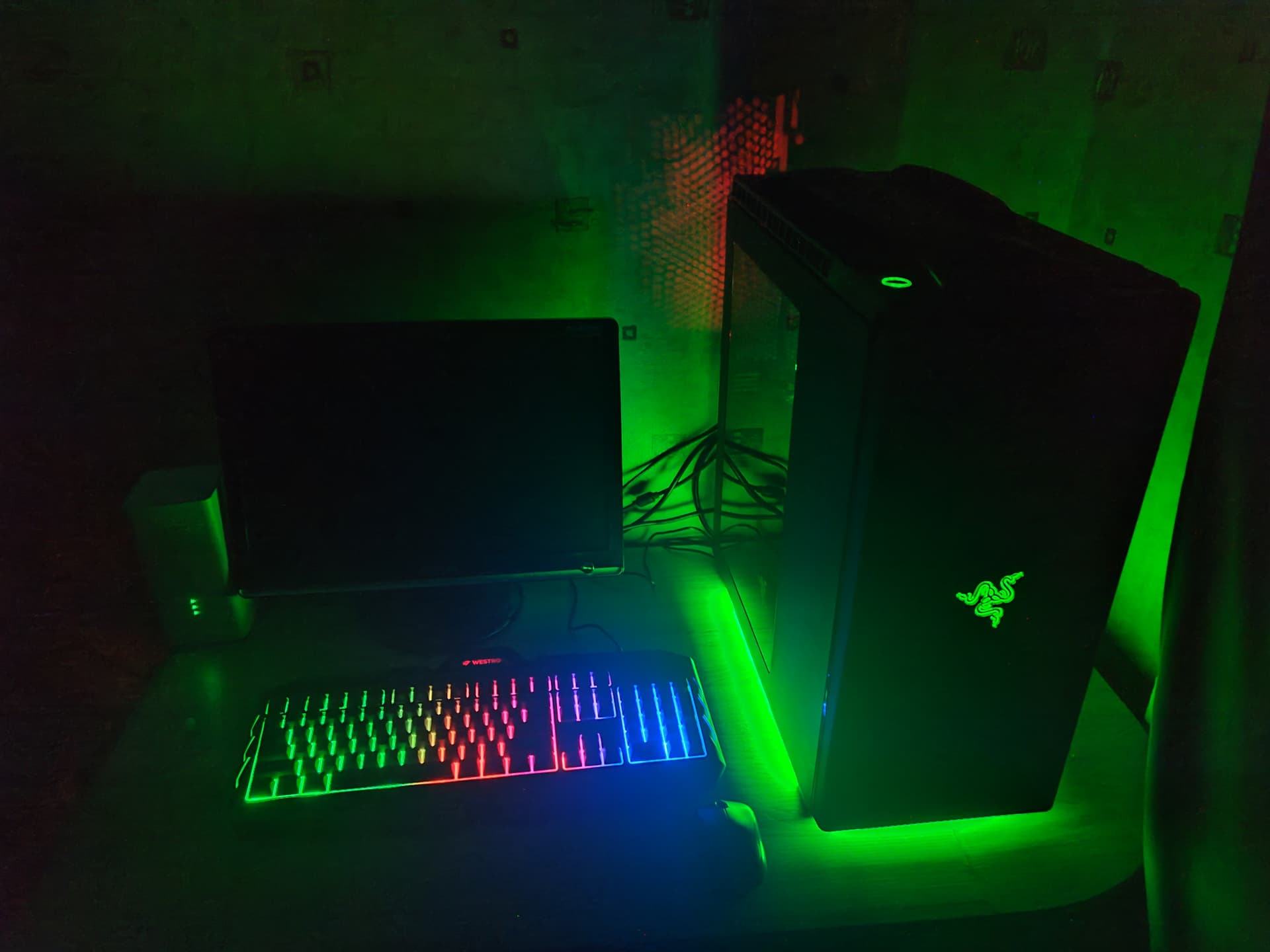 Vakar saņēmos un aizstiepu datoru līdz kompresoram lai izpūstu ~gadu putekļu, tagad varu ielikt savu sturīti. Baigi žēl ka mani rgb nevienā kamerā neizskatās tik labi kā dzīvē. Izmisīgi vajag mousepad jo optimusa galds kā izrādās galīgi nav spējīgs izturēt peli