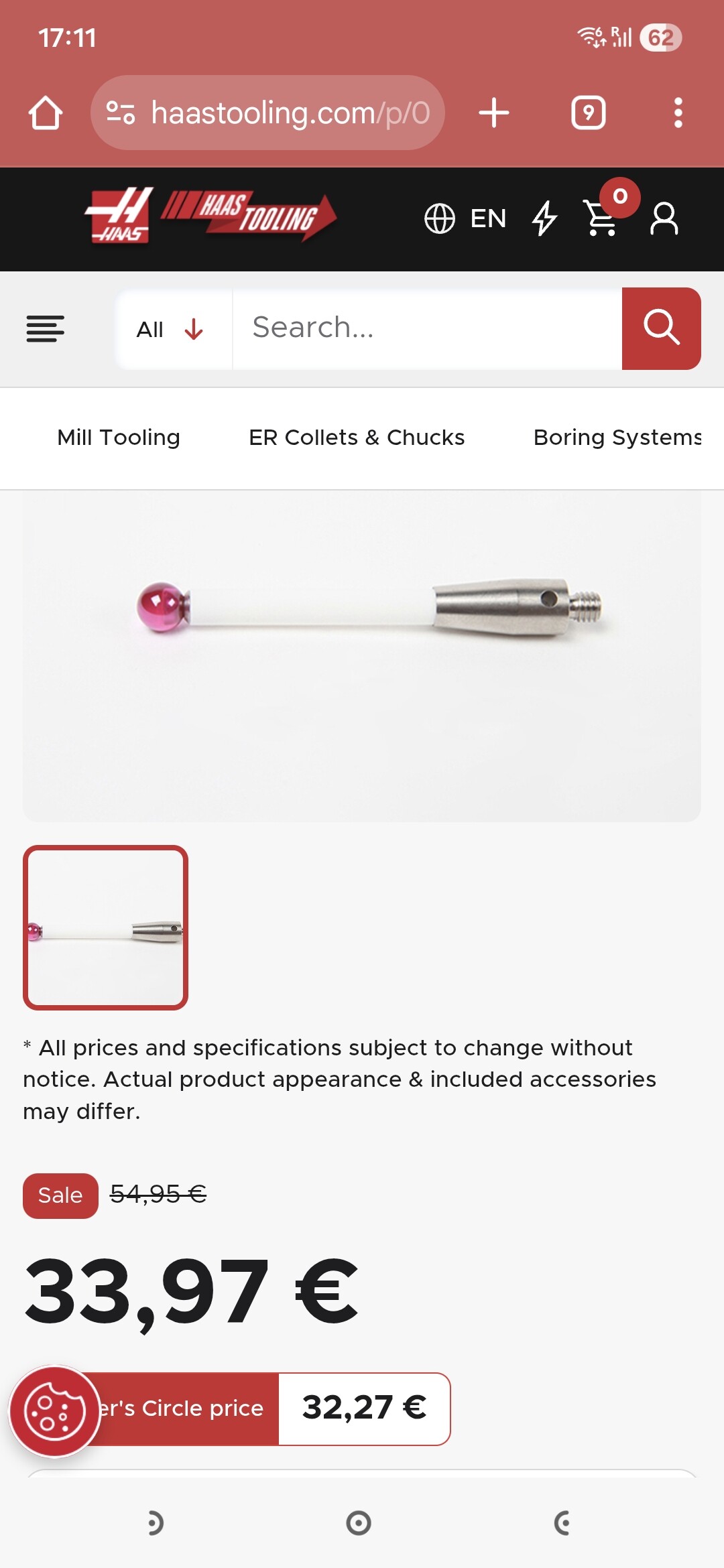 spekulatīvi lielākā ir 10x100 frēze (25-30eur) un otra ir 8x50 (zem 20eur) un kalibrācijas stienīts maksā kādus 10.