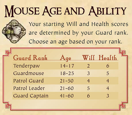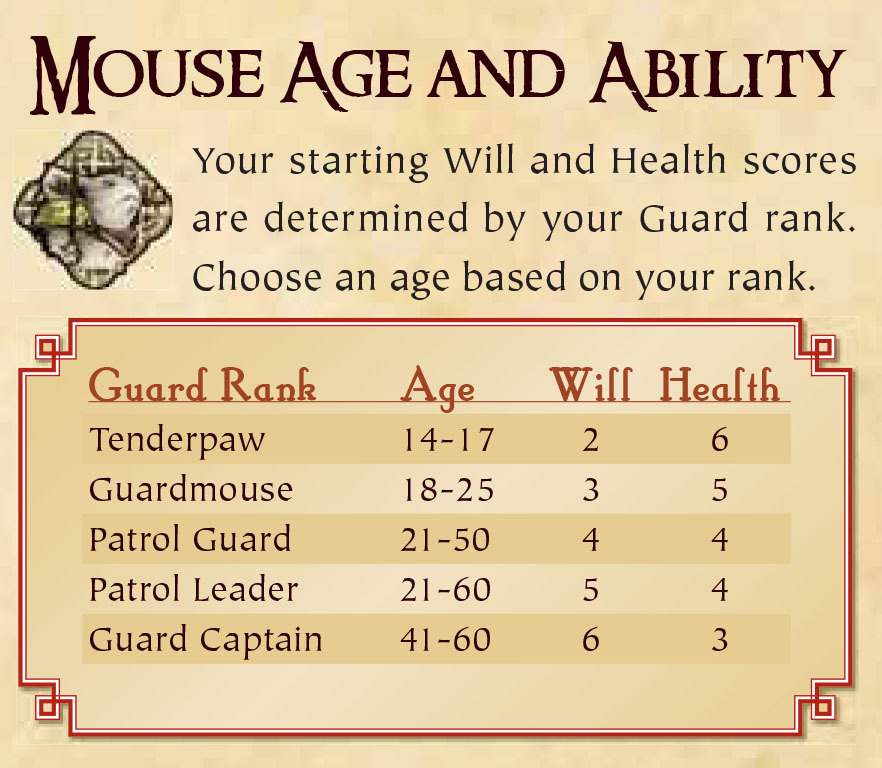 What level of experience or rank would you like to play? There are 4 ranks for the Mouse Guard: tenderpaw, guardmouse, patrol guard, patrol leader
