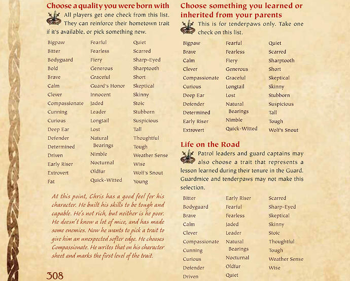 Traits describe the personality quirks and special qualities that all of the guardmice possess.