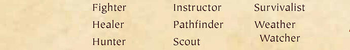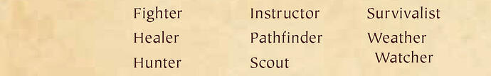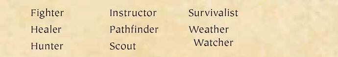 Each player, except for tenderpaws, may add one check to a skill from the list below. Each player must choose a unique specialty—no two players can have the same skill as their specialty.