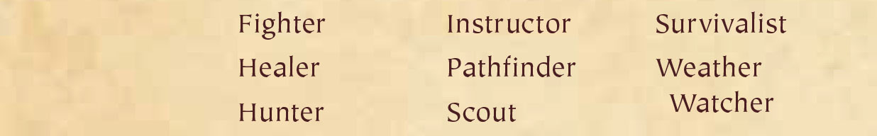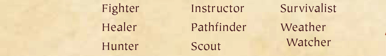 You will be given a number of choices in each of the following sections. Each time you choose a skill, check it off or note it on your character sheet. You may choose or check a skill multiple times, either using multiple choices from one section or from various sections.