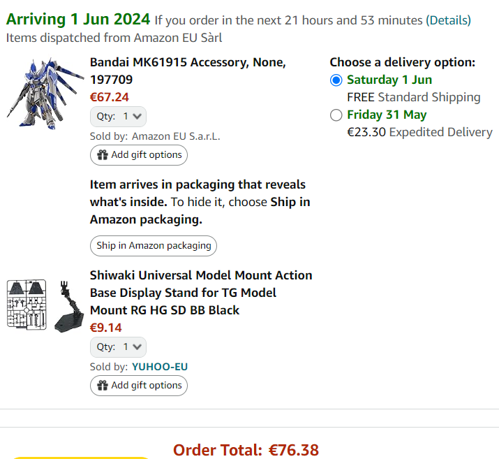 No tā izplatītāja piegādes laiki nav tik ātri, kā jau minēju, 2-3 nedēļas līdz mums. Kā arī tie paši Gundam modeļi parādīsies augustā, oktobrī pie izplatītāja. Labākais piegādes datums kas tur bija vienam modelītim “kaut kad jūnijā”, to ar nav jēga gaidīt.