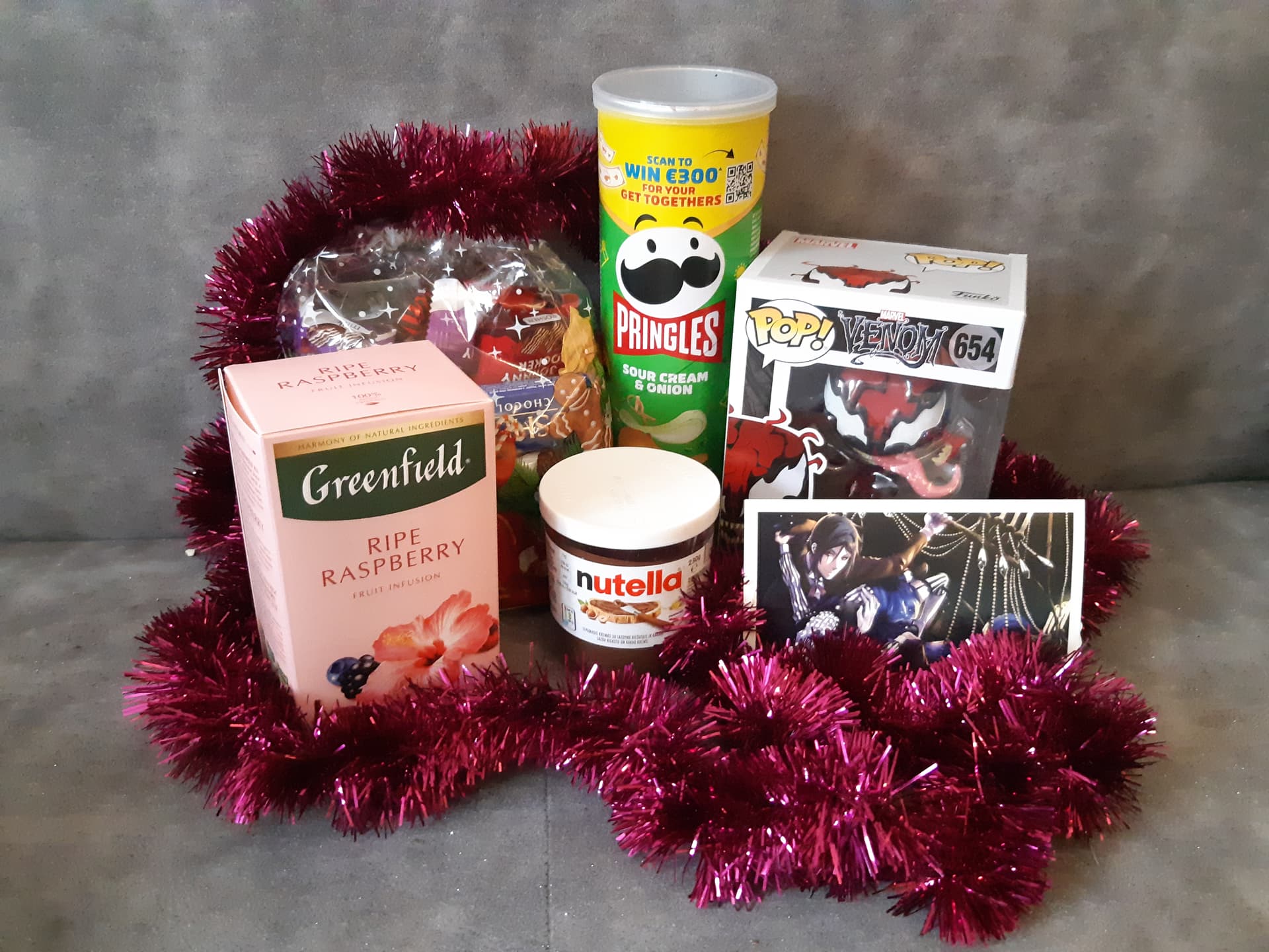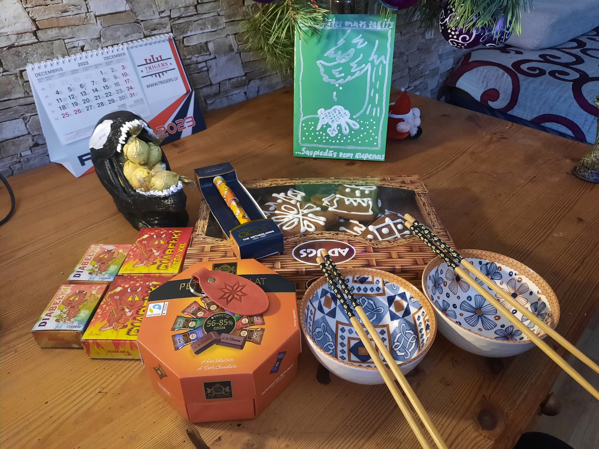 Pārsteigumi sākas ar pašas paciņas iesaiņojumu, ilgu laiku grozīju galvu kāpēc uz tās dzeltenās lentas bij tieši tas rakstīts. Pārsteigumi turpinājās atverot paciņu un redzot cik tur daudz kas ir iekšā. Kautkā aizdomīgi. Liels paldies par saldumiem - gan venoma mutē, gan kladiskākos iepakojumos. Bļodiņas ar čopstikiem ir tik foršas. Petardes…ganjau izmantošu vecgada vakarā. Kartiņa ar superīga