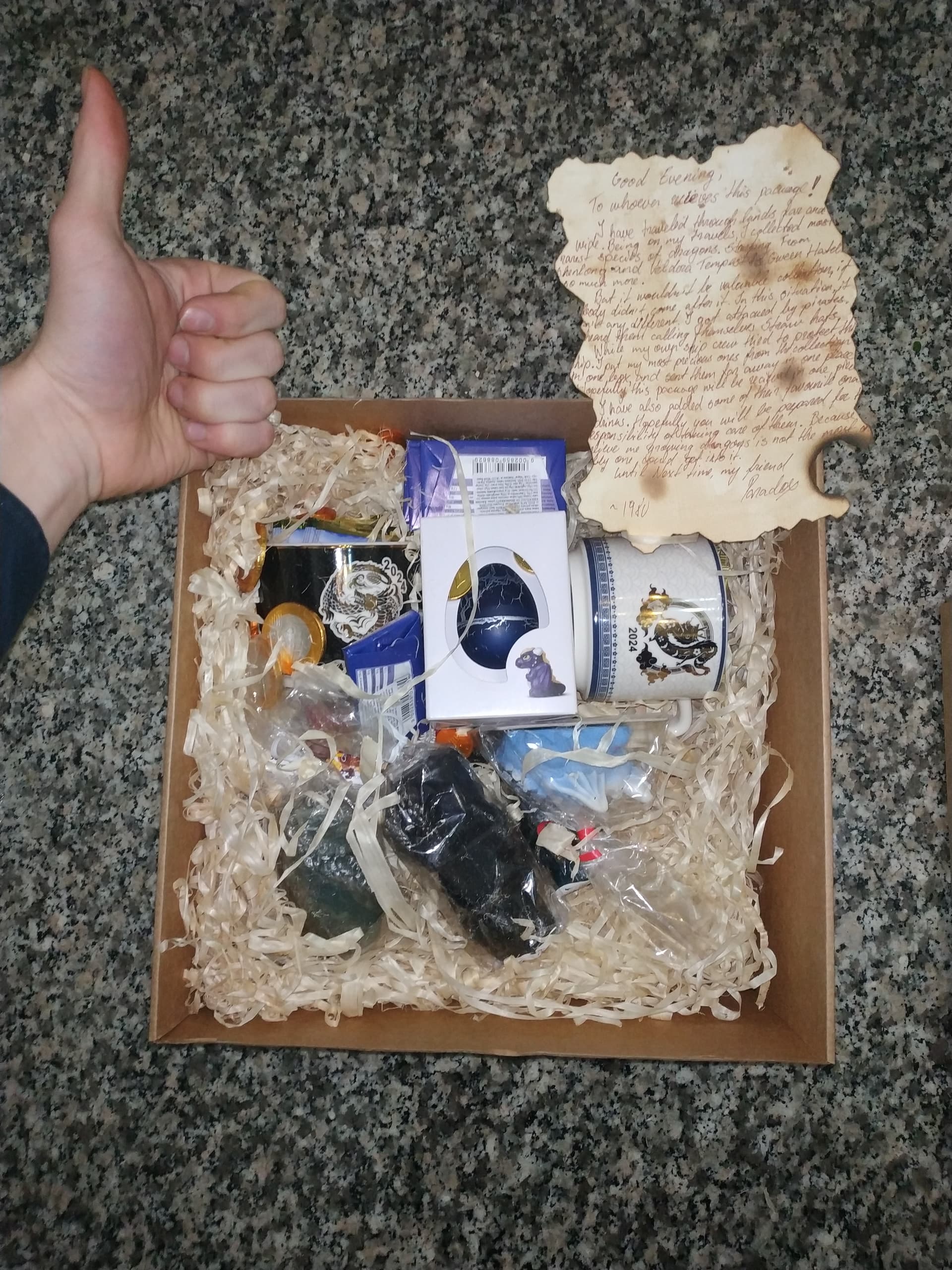 Ļoti vērtīga dārgumu paciņa, kas par brīnumu ir ceļojusi jau no ~1980-tajiem gadiem. Pati paciņa labi saglabājusies, bet vēstule kaut kādās cīņās gan apdegusi.
