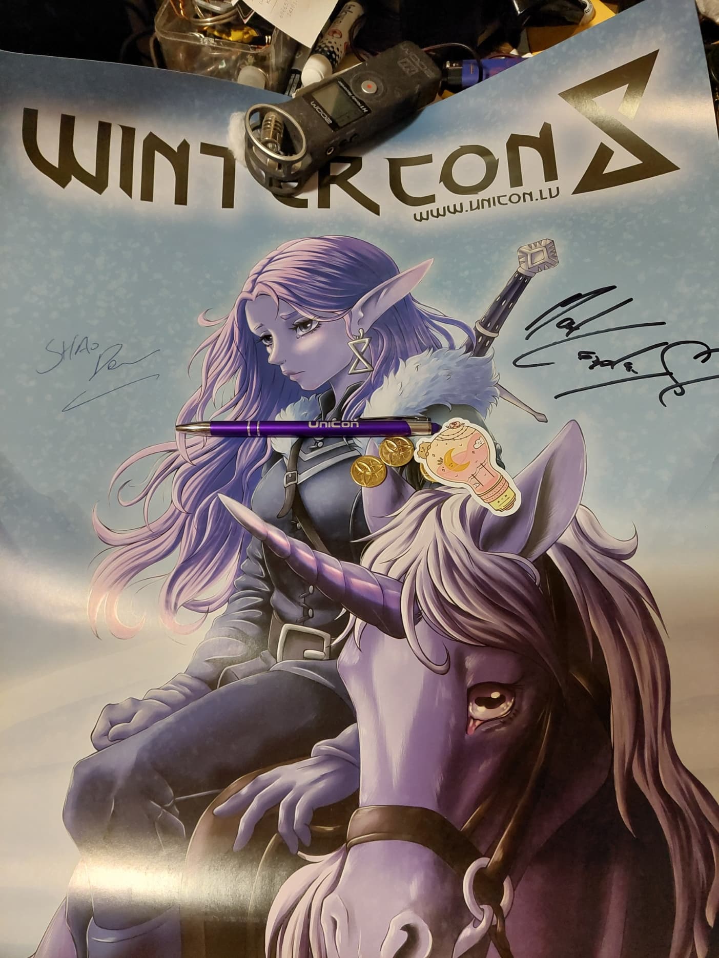 Mans introverts gribēja nošauties mirkļiem runājot angliski. Gribēju vēl parakstus dabūs no Witcher balss aktiera , bet tam pa maksu bija. Citus kandidātus kurus vēlējos dabūt, nesanāca. Turpināsim medīt UniCon laikā ![]()