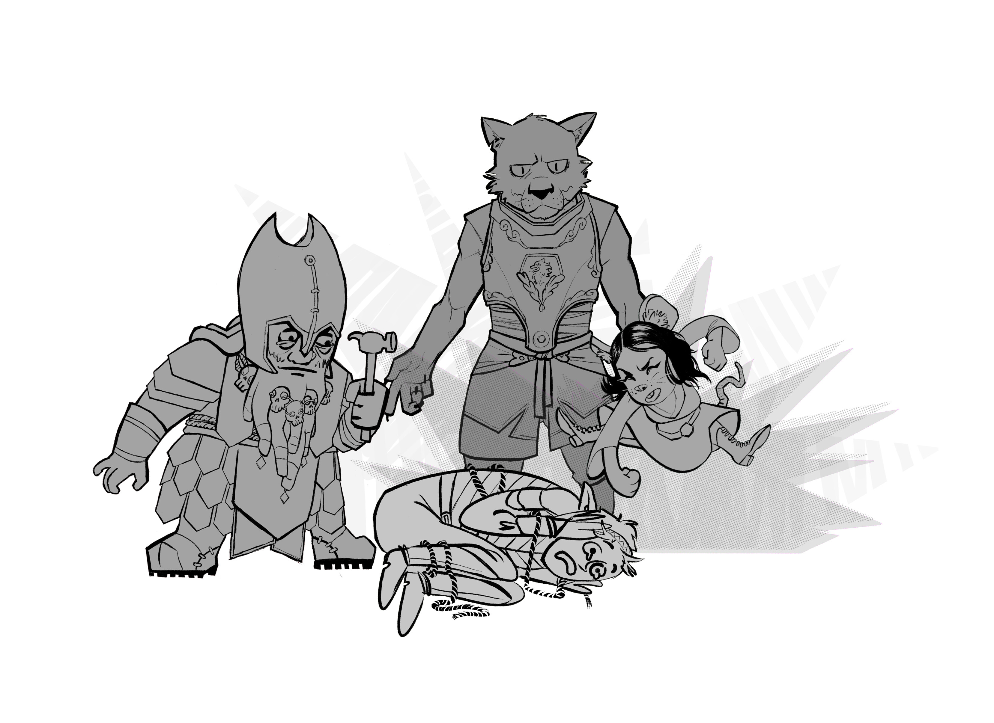 Old art, still like it. Grupā ar ko spēlēju Pathfinderu, nevienam nav thievery skills. Visas cīņas beidzas bez izdzīvojušajiem, jo trīs faking cilvēki nevar random čali sasiet.