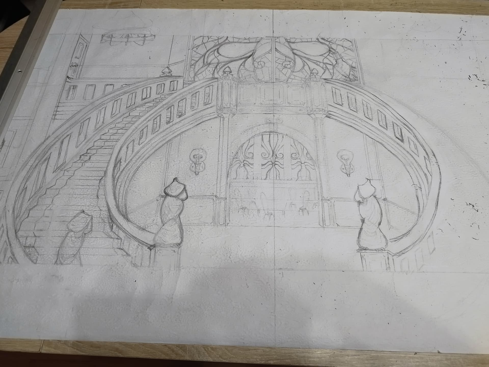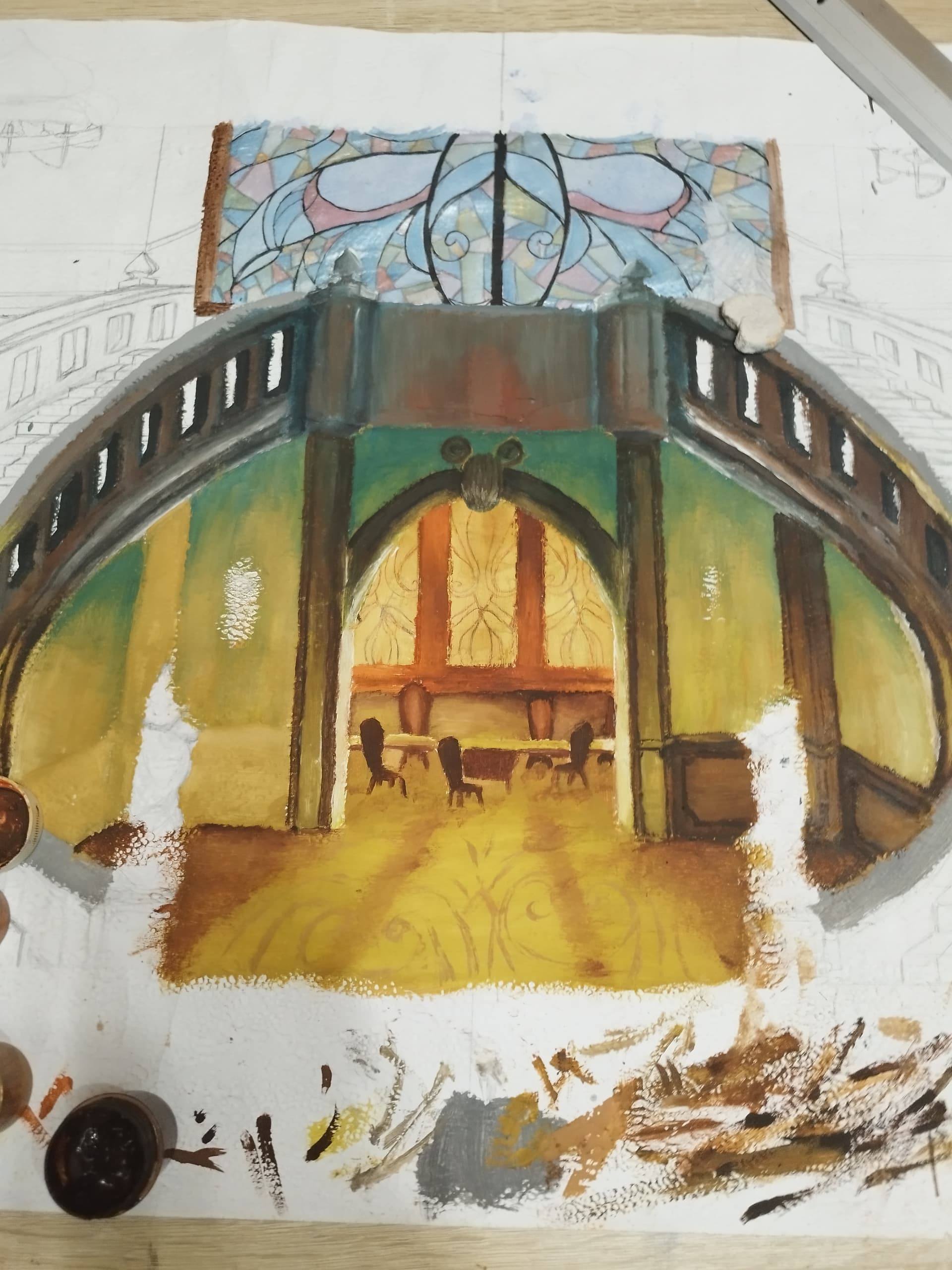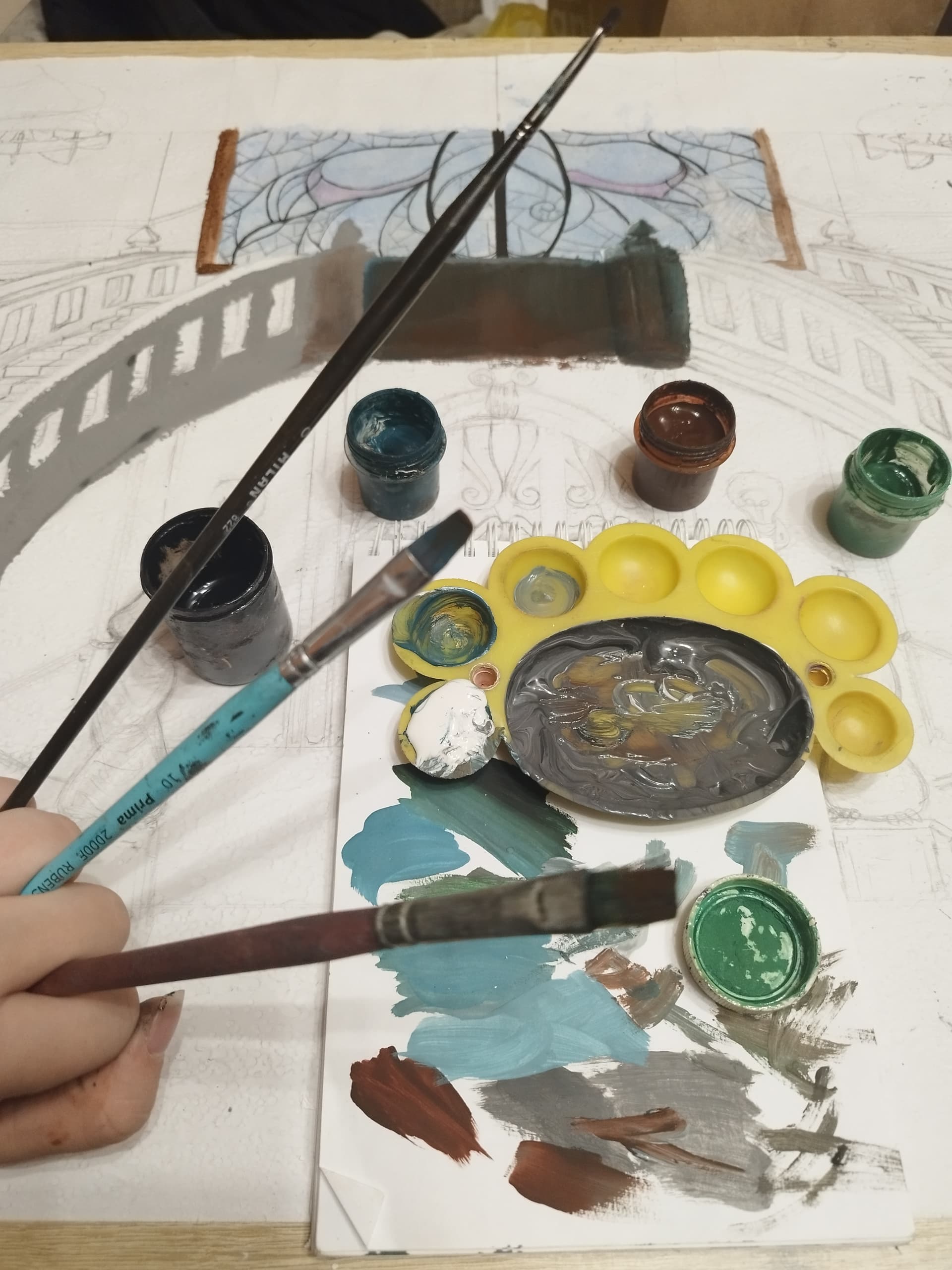 Sāku krāsot,sapratu,ka ūdenskrāsas šeit nederēs,paņēmu vecās labās guašas.